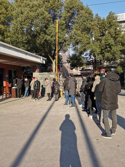 員工有序排隊,按嚴格按防疫規定要求進行每日體溫檢測并登記以及消毒、自覺戴好口罩、亮健康碼等等。雖然大家好久不見,但是都自覺的打個招呼后就匆匆返回崗位。